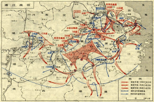 于此相反,我军在党中央和毛主席的正确领导下,经过两年半的血火征程,已解放东北全境、华北大部和长江中下游以北地区。