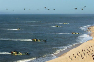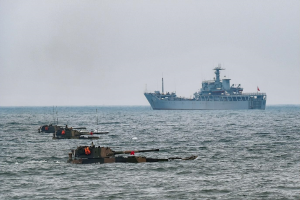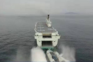 (服役于人民海军的075型两栖攻击舰正在释放气垫登陆艇)