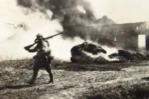 其实王满新和梅芳的家乡确实遭到了日军的扫荡,梅芳和乡亲们都被日军聚集在一起,被枪指着被逼问八路军的下落。