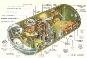 B-29轰炸机机舱布局,注意在一侧角落内的化学马桶,见红框位置