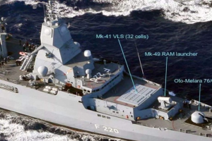 德国海军护卫舰虽然是自研,但是武器系统都是进口的,图中的mk41发射器,海拉姆导弹和奥拓舰炮都是进口货。