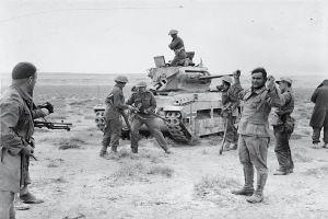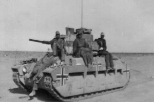 ▲1941年12月3日,在北非战场的"十字军"行动中,一辆被德军俘获的马蒂尔达坦克再次被新西兰军队夺回,其乘组被俘