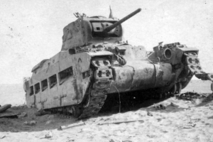 ▲1942年,在北非沙漠装车运输的玛蒂尔达坦克