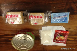 其种类更是高达26种,在罐头之外还有这一大包的烘烤面包,这种面包托干了水分,其硬度就跟饼干一样。