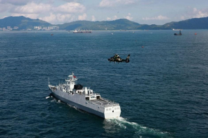 (直升机即将降落在056护卫舰上)
