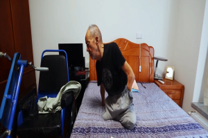 接下来是如何自由行动的。他用断肢撑起身体,慢慢地移动臀部,一点一点地从床边挪到三轮车的扶手上,再从扶手挪到三轮车的坐垫上,每次练下来,已是一身大汗。经过不断的努力后,才慢慢地能从床上移动到三轮车上了,解决了自己如何“走”的问题。