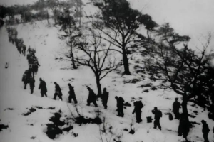 在前往朝鲜的路上,整个部队都面临着很大的困难,粮食不够,他们只能吃辣椒面来获得能量,没有水喝,他们就吃还未融化的雪。白天美国军队的战机狂轰乱炸,他们只能在夜里摸黑前进。害怕被敌人发现,就只能把衣服反过来穿,内里白色的棉花和雪地融为一体。但是路还是越来越难走,连唯一用来补充能量的辣椒面也所剩无几。虽然经历了千难万险,好在部队还是成功开赴了战场,但是来不及挖坑道,他们只能埋伏在雪地里,等着打伏击。三天三夜不眠不休趴在雪地上完成潜伏阻击任务,饿了,每天只有3个土豆充饥;渴了,就抓起身旁的雪往嘴里塞。