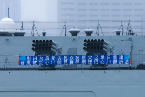 2019年时,人民海军052D型导弹驱逐舰太原舰,也曾启程赴日参加日本举行的国际舰队阅舰式。太原舰靠港时还曾引起轰动,只不过2019年的日本国际舰队阅舰式因为台风“海贝思”被迫取消,太原舰并未迎来与多艘日舰一同检阅的机会。并且“海贝思”台风期间,太原舰还曾打出了“慰问台风受灾民众,祝愿灾区早日重建”的日文标语(平假名与片假名含量极低,盘子严重怀疑中国人读起来可能比日本人读的顺)慰问日本的受灾群众。