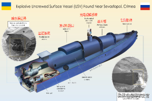 ■乌军袭击塞瓦斯托波尔港的自杀式无人艇剖视图。