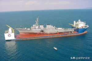 ■在亚丁湾遭自杀式快艇攻击受损的“科尔”号驱逐舰由半潜船运回国内修理,舷侧的破损清晰可见。