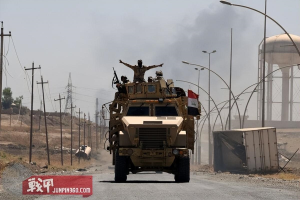 (2017年6月9日,在从伊斯兰国武装分子手中夺回塔尔阿法尔的战斗中,伊拉克政府军行驶在通往塔尔阿法尔的道路上。)