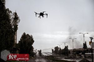2017年3月14日在伊拉克北部城市摩苏尔,一架携带两枚手榴弹的无人机在伊拉克部队的操控下飞行,该部队的目标是使用无人机打击伊斯兰国武装分子。)