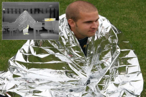↑太空毯(也称救生毯)和参考的红外辐射隐蔽效果(小图)。