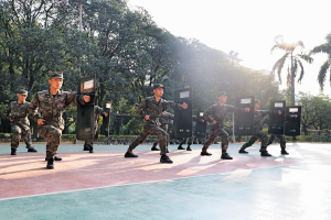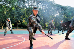 警棍盾牌可谓是武警部队的“独门绝技”,是维稳处突必须掌握的看家本领,更是新同志们提升力量、速度、协调性的绝佳途径。一招一式,尽显军人本色,一动一静,尽展飒爽英姿。动作渐渐协调、招式渐渐掌握、操作渐渐熟练,他们也渐渐取得了“四连超凡”。