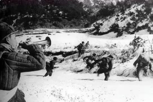 一九五五年十二月三十一日晚上十一时,抗美援朝的第3次战争开始了。42军124师372团被派往济宁方向推进,以切断南朝鲜第二师部和第五师部的后撤路线。队长将先锋的事情交给了二营,王恒一和十连的队长王清秀两人,则是带领着一队重机枪和两个步兵团作为先锋。紧跟其后,二排的白文林、五班长冷树国、窦国斌、王二、郭银锁五个人,就是这支“尖刀排”“尖刀组”。