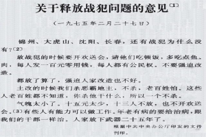 当时毛主席在批示中写道:“还有一批战犯都被关押20多年了,还关着干什么,把他们都放了,来去自由”。