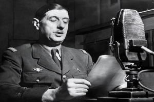 1940年6月,巴黎沦陷,保罗·雷诺的继任者贝当决定停火,戴高乐却坚持作战,不愿举手投降,因此被贝当排挤出局,开始在英国流亡。