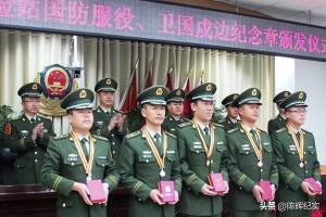 ——卫国戍边纪念章。此纪念章是为表彰戍守边关的人民解放军指战员和人民武装警察官兵而专门颁发的奖章,是中国人民解放军总政治部根据《中国人民解放军纪律条令》的有关规定设计制作的,于2011年8月1日起全军正式启用的纪念章。