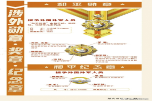 二、奖章系列。包括荣誉称号奖章、奖励奖章、表彰奖章、和平奖章。