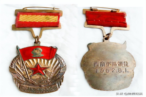 1949年底,西南军区为纪念解放大西南,特向参战人员颁发“解放西南胜利纪念章”1枚。纪念章直径为3.8厘米,重约11克。纪念章正面上方是四面红色的“八一”军旗,每面军旗上面都有一颗红五星,分别代表参加解放西南战役的中国人民解放军三大野战军(“一野”“二野”“四野”)、湖南省独立一师、二师、桂滇黔边纵队等部队。
