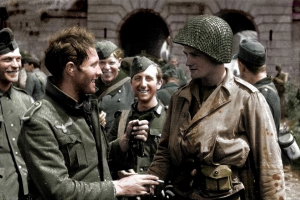 德军欢呼雀跃,原来德国士兵本来已经做好了等死的打算,结果看到杰克单枪匹马的前去迎战,瞬间激发了斗志,众人将杰克高高抛起,称他是德军的大英雄。