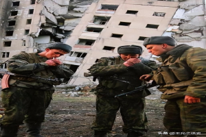 俄军在摇摇欲坠的车臣总统府前