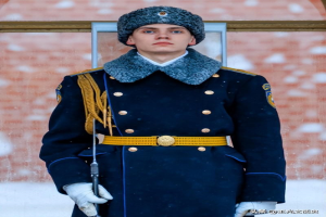 俄罗斯莫斯科亚历山大军人公墓外,一名卫兵正在站岗