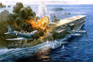 飞龙号航母所有舰载机倾巢而出,直奔美国航母战斗群而去。经过一番亡命轰炸后,美国约克城号航母因为本有内伤,在空袭中被击沉,美军也损失一艘航母。