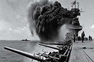 不同于欧洲陆地战场上绞肉机般的残酷,中途岛战役的核心作战时间仅有五分钟。这五分钟内,美国打出了历史上屈指可数的以少胜多的海战,日本海军4艘航母全部击沉,美军仅损失1艘。