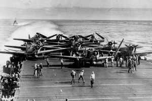 日军航母甲板上的工兵们接到南云忠一的命令后,开始给零式战斗机装备高爆弹。就在这时,东北方向来了一大批美军战斗机,其数量目测是一百余架,它们对日本的航母进行疯狂打击,让在赤城号航母指挥的南云忠一不知所措。