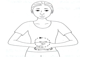 按摩方法:仰卧位最佳,用双手掌根重叠,以肚脐为中心,顺时针方向旋转按摩腹部,以合适、均匀、柔软的力度带动掌下腹部的皮肤、肌肉,反复按摩5~8分钟。