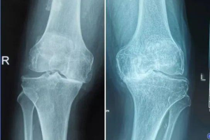 作者供图(膝关节骨性关节炎表现:关节间隙不对称或者变窄,边缘骨质增生和骨赘形成,可见膝内翻畸形)