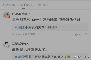 辗转反侧,晚上睡不着觉,翻手机刷到这样一条话题 “年轻人如何预防脱发” 是啊 ,现在的年轻人生活工作压力的确是很大 ,人还没到中年呢,就早早地要面对脱发问题了。点赞最高的评论是这样的。