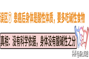 有理论认为,患癌后的身体,是酸性体质,所以要多吃蔬菜、水果等碱性食物来中和。这个理论有2点错误: