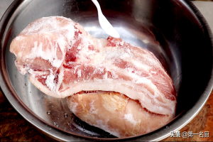 把肉放进盆中,倒入冷水,一定要冷水,水漫过肉的位置,盆中倒入食盐,让盐充分溶解在水里,过个几分钟肉就会解冻,这个方法不仅解冻快,还可以维持肉质的鲜美。