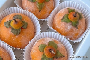 除直接吃柿子,也可以做成美味的小甜点吃,比如可可爱爱的柿子糯米糍。光看它的外表,就已经非常招人喜欢,满满的秋日气息扑面而来。软糯的橙色糯米外皮,里面包着流心的柿子酱。
