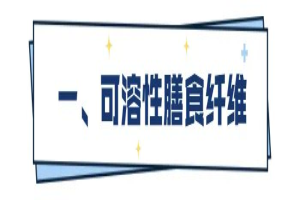 可溶性膳食纤维是既可溶解于水, 又可吸水膨胀, 并能被大肠中的微生物酵解的一类纤维, 包括果胶等亲水胶体物质和部分半纤维素, 如树胶、果胶、藻胶、豆胶、琼脂和羧甲基纤维素等。