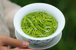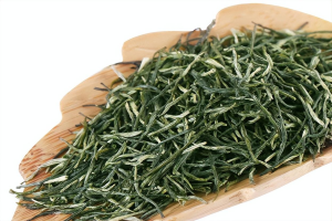 该茶的外形紧细修长,匀齐挺直,茶叶表面白毫显著,茶骨肥硕,色泽翠绿油润,干茶中散发着幽幽清香。