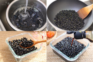 1、取适量黑豆淘洗干净,将坏掉的黑豆挑出来,控干水分。