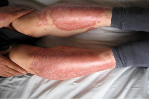 牛皮癣又称银屑病,是一种常见而又极易复发的皮肤病。其特征性表现为红色的丘疹或斑块,上覆有多层银白色鳞屑。目前认为,这种病的发生可能与遗传、感染、代谢异常及免疫功能障碍等因素有关。另外,精神异常、外伤、手术、季节变化、射线照射、内分泌变化、妊娠、刺激性食物或某些药物也可诱发或使此病加重。