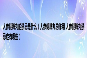 下面由养生王来解答问题。人参健脾丸的禁忌是什么,人参健脾丸的作用 人参健脾丸禁忌症有哪些很多人还不知道,现在让我们一... 下面由养生王来解答问题。人参健脾丸的禁忌是什么,人参健脾丸的作用 人参健脾丸 ......