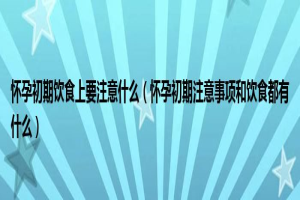 下面由养生王来解答问题。怀孕初期饮食上要注意什么,怀孕初期注意事项和饮食都有什么很多人还不知道,现在让我们一起来看看...下面由养生王来解答问题。怀孕初期饮食上要注意什么,怀孕初期注意事项和饮食都有什 ......