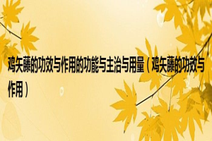 下面由养生王来解答问题。鸡矢藤的功效与作用的功能与主治与用量,鸡矢藤的功效与作用很多人还不知道,现在让我们一起来看看...下面由养生王来解答问题。鸡矢藤的功效与作用的功能与主治与用量,鸡矢藤的功效与作 ......