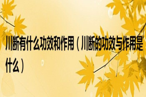 下面由养生王来解答问题。川断有什么功效和作用,川断的功效与作用是什么很多人还不知道,现在让我们一起来看看吧!1、川断能...下面由养生王来解答问题。川断有什么功效和作用,川断的功效与作用是什么很多人还 ......