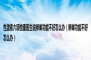 下面由养生王来解答问题。性激素六项检查医生说卵巢功能不好怎么办,卵巢功能不好怎么办很多人还不知道,现在让我们一起来看...下面由养生王来解答问题。性激素六项检查医生说卵巢功能不好怎么办,卵巢功能不好怎 ......