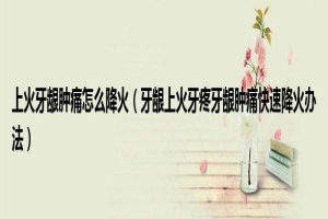 下面由养生王来解答问题。上火牙龈肿痛怎么降火,牙龈上火牙疼牙龈肿痛快速降火办法很多人还不知道,现在让我们一起来看看吧...下面由养生王来解答问题。上火牙龈肿痛怎么降火,牙龈上火牙疼牙龈肿痛快速降火办法 ......