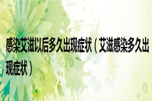 下面由养生王来解答问题。感染艾滋以后多久出现症状,艾滋感染多久出现症状很多人还不知道,现在让我们一起来看看吧!1、艾滋...下面由养生王来解答问题。感染艾滋以后多久出现症状,艾滋感染多久出现症状很多人 ......