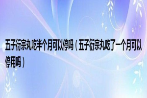 以下问题将由健康王回答。五子衍宗丸服用半个月后可以停药吗?五子衍宗丸服用一个月后可以停药吗?很多人还不知道。现在让我们一起来看看...下面是健康王要回答的问题。五子衍宗丸可以停药半个月吗?五子衍宗丸可以停一个月。 ......