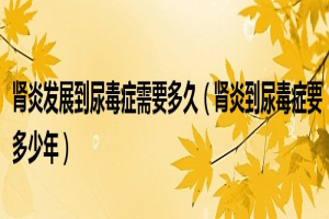 以下问题将由健康王回答。肾炎发展成尿毒症需要多久,肾炎发展成尿毒症需要多少年?很多人还不知道。现在让我们来看看!1.肾炎...以下问题将由健康王回答。肾炎发展成尿毒症需要多久,肾炎发展成尿毒症需要多少年? ......