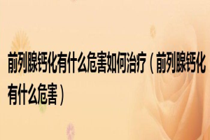 以下问题将由健康王回答。前列腺钙化的危害是什么,如何治疗?很多人还不知道前列腺钙化的危害是什么。现在让我们来看看!1, ...以下问题将由健康王回答。前列腺钙化的危害是什么?如何看待?前列腺钙化的危害是什么? ......